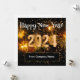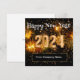 Cartões de celebração de Ano Novo Feliz com orçamento de negócios glitzy elegantes em um design editável festivo criado com letras em tom dourado e espaço para o nome da sua empresa.