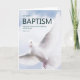 Um cartão tradicional de batismo temático para adultos que apresenta uma pomba para representar o Espírito. O verso bíblia deste cartão é de Mark 16:16 - Quem acredita e é batizado será salvo.