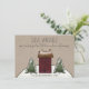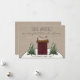 Cartão de Boas Festas Casa Rústica Country Saltbox - Este cartão de Natal adoravelmente country apresenta uma casa saltbox vermelha (burgundy) com árvores de pinheiro de cada lado em uma colina de neve. O cartão está sobre um fundo Kraft. O cartão também apresenta uma saudação de Natal no verso do cartão. O cartão é personalizado com o seu nome. O cartão faz parte de uma coleção.