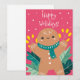 Cartão de Boas Festas com Biscoito de Gengibre Retro Fofo.