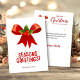 Compartilhe votos calorosos de férias com este elegante cartão de Natal com uma fita vermelha encimada por um musgo festivo e bagas vermelhas brilhantes no centro. Abaixo, uma alegre mensagem de “Boas Festas” rodeada por centelhas amarelas suaves, criando um design clássico e alegre de Natal perfeito para enviar aos entes queridos. GCard-007
