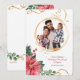Um design moderno, de foto, de feriado apresentando flores vermelhas de poinsettia, frutas e verduras com fitas douradas onduladas e uma janela de foto redonda. (Foto de pessoas criada por drobotdean - www.freepik.com). (Vetor criado por freepik - www.freepik.com). O cartão é fácil de personalizar com sua redação, fonte, cor da fonte, forma do papel e escolha do tipo de papel. Não é exatamente o que você está procurando? Todos os nossos produtos podem ser personalizados para atender às suas necessidades sem custo extra. Basta entrar em contato conosco em heartfelthelper@gmail.com. Produtos coordenados disponíveis: Basta perguntar!
