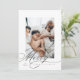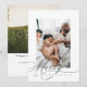 Um cartão de Natal fotográfico elegante apresenta letreiros à mão de Feliz em preto.