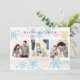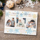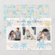 Este cartão moderno e delicado é perfeito para enviar votos de Natal e Festas para familiares e amigos. O design apresenta uma decoração ao longo das bordas superior e inferior, com flocos de neve em diferentes tamanhos e cores suaves. Três fotos da família são exibidas no centro. Este cartão elegante é ideal para celebrar o Natal e todas as festas durante a temporada de inverno.