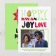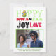 Adicione sua própria foto e saudação personalizada a este cartão de Kwanzaa moderno e trendy. Confira o design de paz, amor e alegria no verso! É divertido e moderno, as cores tradicionais de Kwanzaa verde, vermelho e preto se destacam e uma espiga de milho. Você consegue encontrar?