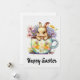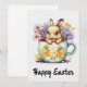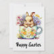Cartão de Boas Festas de Páscoa em Aquarela com Coelho em uma xícara de chá e flores