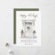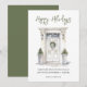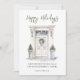 Imagem de porta da frente com pintura em aquarela de "Boas Festas" com escrita moderna decorada com folhagens natalinas.