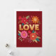 Torne qualquer ocasião ainda mais especial com este cartão de cumprimentos elegante e plano que apresenta a palavra “LOVE” em letras douradas e negrito, rodeada por um vibrante buquê de flores. Contra um fundo vermelho profundo, este design exala calor e charme, tornando-o perfeito para celebrações românticas como o Dia dos Namorados, aniversários, casamentos ou simplesmente para dizer “Eu te amo.”
