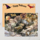 Uma foto de jacarés com fotos dos meus gatos, uma cobra, algumas abóboras e um desenho de um morcego. Atualize facilmente o texto.