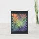 Este cartão de cumprimentos apresenta um deslumbrante design de colcha de caleidoscópio em tons vibrantes de laranja, verde lima, roxo e preto. O padrão intrincado da colcha hipnotiza o observador, lembrando uma sinfonia de cores e formas giratórias.
