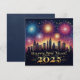 Celebre a chegada de 2025 com este cartão de Ano Novo vibrante e festivo, apresentando um deslumbrante espetáculo de fogos de artifício sobre uma paisagem urbana lindamente iluminada. A mensagem dourada 'Feliz Ano Novo 2025' adiciona um toque elegante, tornando este cartão perfeito para espalhar alegria e votos de felicidade para entes queridos, amigos ou colegas. Brilhante, colorido e cheio de animação, este cartão é uma maneira ideal de receber o ano novo com uma sensação de celebração. Você pode personalizar a mensagem interna para torná-la pessoal para o seu