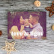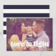 Este moderno cartão Hanukkah contém as palavras amor e luz sobre uma foto de sangria de cheio. As costas têm um padrão listrado.