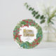 Um design de cartão de Natal com script de caligrafia dourada moderno que pode ser personalizado com o seu texto. A design apresenta uma safra dourada "Feliz Natal" com coroa botânica de Natal. Um design de Natal rústico, mas moderno, ideal para qualquer um.