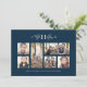 Este cartão festivo de seis fotos apresenta um monograma proeminente rodeado por galhos festivos rústicos e o ano e um lugar para uma saudação personalizável. A cor de fundo azul do marinho é festiva e clássica, mas pode ser alterada clicando em "personalizar".