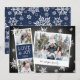 Um cartão com fotos de feriado bonito apresenta uma faixa fotográfica com duas fotos e um painel de texto lendo "Love & Joy", além de um instantâneo inspirado por câmera instantânea com uma legenda manuscrita. Personalize com seu nome familiar em um fundo de quadro-negro rústico pontilhado com flocos de neve brancos desenhados à mão.