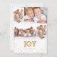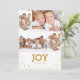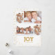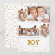 Compartilhe a alegria da temporada com este design divertido e moderno que apresenta uma colagem de quatro fotos de sua família com uma tipografia simples e contemporânea em ouro em branco. No verso, um padrão de coordenação de pontos de ouro aleatórios adiciona talento e estilo.