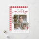Compartilhe saudações de Natal com esses cartões de Natal rústicos e elegantes com três de suas fotos favoritas (1 paisagem, 2 quadradas) cercadas por uma fina borda branca com galhos pintados em aquarela, ramagens, flores vermelhas e pinhas espiando nos cantos. "Tão Feliz Natal" aparece no topo em uma mistura elegante de letras maiúsculas e cursivas. Personalize com sua saudação de Natal personalizada, nome(s) e o ano ao longo da parte inferior. O verso dos cartões tem um padrão xadrez de búfalo rústico nas cores natalinas vermelha e branca.