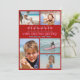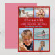Cartão com fotos plano de Natal da família Flamingos com um lugar para cinco fotos de crianças, animais de estimação, pais ou fotos de férias. Cor vermelha escura com dois modelos de fotos no topo. Uma fileira de flamingos cor-de-rosa vestindo verrugas tropicais e de pé entre pequenos estrelas azuis decoram a área de texto. O texto rosa moderno é fácil de personalizar com a sua escolha de saudação e assinatura de família. Na parte inferior desta placa plana estão mais três fotos. O reverso é um flamingo sólido rosa.