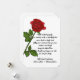 Honre a memória de um ente querido com este elegante Cartão de condolências Personalizado, maravilhosamente impresso em papel de alta qualidade. Apresentando uma ilustração rosa vermelha vívida e uma mensagem personalizável e emocionante, este cartão memorial moderno é um guardião duradouro para aqueles que lamentam uma perda. É um símbolo significativo de conforto para funerais, memoriais, ou para enviar simpatia. Personalize a mensagem e a assinatura para criar uma lembrança verdadeiramente ponderada e eterno
