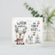"Votos Calorosos e Beijos de Rena", colocado contra um fundo branco e nevado. Este design mantém o charme caprichoso e infantil, com uma atmosfera invernal e festiva