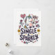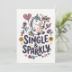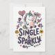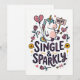 Um cartão de saudação alegre com um unicórnio determinado segurando um sinal de "não", cercado por corações, flechas e rosas divertidos. A frase Solteira & Brilhante adiciona um tom confiante e bem-humorado que celebra a independência com um toque de fantasia.