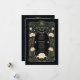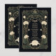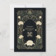 Certifique-se de que os seus convidados tenham todas as informações essenciais do casamento com esta bela carta de detalhes do Art Nouveau. Apresentando intrincados elementos botânicos em tons suaves e verdes contra um fundo preto profundo, esta design de inspiração vintage expele a sofisticação do eterno. Os delicados sotaques dourados e padrões florais correntes criam uma estética romântica e elegante, fazer perfeita para casamentos góticos, boêmicos ou clássicos. Personalize este cartão com detalhes de recepção, opções de acomodação e diretrizes de código de vestimenta para uma experiência de casamento perfeita e na moda.