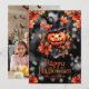 Cartão de Dia das Bruxas com uma lanterna-jack vestindo uma bruxa negra na frente e uma foto na parte de trás. Personalize facilmente este cartão fofo do Dia das Bruxas com sua foto e o nome da família.