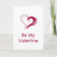 Esta carta lúdica apresenta um rabisco cardíaco de amor em vermelho escuro em um fundo branco com as palavras "Seja meu Namorados" centradas abaixo. Adequado para dar tanto a machos quanto a fêmeas.