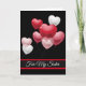Um cartão de dia de os namorados para uma irmã especial na sua vida é mostrado com um fundo preto e balões bonito em forma de vermelho, rosa e coração branco. Personalize este cartão ou comprar como está. A placa tem um dentro de mensagem especial.