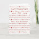 Design vermelho e branco clássico com várias fontes e frases no cobrir. Você será meu? Cartão de saudação do dia de os namorados. Imagem e direitos de autor reversos Shoaff Ballanger Studios.