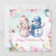 Um cartão simples de Dia dos Namorados com um casal de bonecos de neve fofos (uma menina e um menino) cercados por flores cor-de-rosa em aquarela. Tema de inverno. Edite usando a Ferramenta de Design para mover/redimensionar os elementos deste design e torná-lo seu.