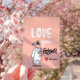 Este cartão de Dia dos Namorados apresenta uma ilustração de um coelhinho fofo emparelhado com um script personalizado "amor você para sempre" e seu monograma personalizado abaixo em uma fonte decorativa. O verso tem um fundo branco com corações artísticos em um padrão contínuo de duas cores.