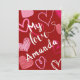 Celebre o amor com este cartão romântico de Dia dos Namorados vermelho com a mensagem sincera “Meu Amor Amanda” na frente, cercada por corações cor-de-rosa, brancos e vermelhos caprichosos. O design vibrante adiciona um toque de alegria, tornando-o perfeito para expressar seu afeto. A parte de trás do cartão inclui uma nota pessoal e sua assinatura, permitindo que você crie uma lembrança memorável para aquela pessoa especial.