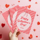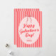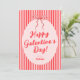 Cartão de Boas Festas Galentine Rosa Vermelho com um laço desenhado à mão e listras da moda.