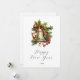 Cartão de feliz ano novo com decoração de Natal com sagrada, bagas e um sino de Natal. Personalize facilmente este cartão de Feliz ano novo elegante com o seu nome de família, o ano e o texto.