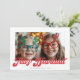 Este cartão de foto divertido e festivo para o feriado apresenta um fundo branco, uma foto horizontal, saudação com letra cursiva retrô e tipografia moderna. O verso do cartão tem um padrão simples de pontos vermelhos e brancos (você também pode adicionar outra foto e/ou texto adicional no verso). **Todas as cores deste design são personalizáveis usando a ferramenta de edição**