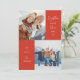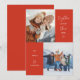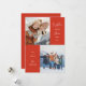 Cartão com fotos de férias moderno e fofo em vermelho com um texto em um roteiro casual que diz "mais do que nunca juntos" com coração. Você pode ter duas fotos na frente. Mostre como sua família cresceu mais forte durante o ano de 2021!