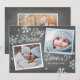 Este moderno cartão de feriado de 2 fotos apresenta alegria, paz e amor com flocos de neve desenhados manualmente em um fundo falso de quadro negro. Adicione uma foto e uma mensagem personalizada ao verso para torná-la sua. Selecione uma forma recortada ou papel texturizado para um toque especial extra.