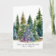 Belo grupo de aquarelas de Natal Coníferas com a cartões de natal "Que a magia dos feriados encha seu coração com paz e felicidade." por fora. Dentro diz "Desejando-lhe um feriado alegre!" e personalize com nomes familiares.