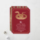 Ande no Ano Novo Lunar com elegância! Estes cartões chineses de Ano Novo exibem um cobra em ouro espantoso contra um fundo vermelho vibrante, simbolizando a prosperidade e a renovação. Perfeito por enviar desejos de sorte e alegria para os entes queridos. Celebre o Ano do Cobra ao estilo! Note que o ouro neste produto NÃO é folha real; é impresso plano.