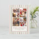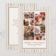 Crie suas próprias fotos personalizadas colage cartões de Natal com oito de suas fotos favoritas ao lado de nomes personalizados minimalistas de tipografia e ano em um simples fundo de listras em cores verdes e douradas. Adicione sua própria mensagem sincera aos amigos e à família na parte de trás deste cartão.