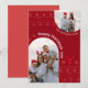 Celebre a temporada com este Cartões de foto de Natal ousado e festivo nórdico com duas fotos pessoais, padrões de malha inspirados na escandinávia e um design de arco moderno. O rico fundo vermelho e ícones divertidos de feriado (árvores, veados e flocos de neve) evocam vibrações de suéter confortáveis — perfeito para uma alegre saudação familiar neste inverno. Adicione seu nome e ano para um toque personalizado!