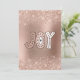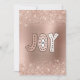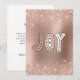 O brilho brilhante borda o topo e o fundo do nosso cartão de saudação de Natal metálico de rosa dourado. A frente da placa apresenta uma ilustração gráfica desenhada à mão da palavra JOY em ouro rosa, pincel e rosa pálido. O texto de exemplo no verso da carta lisa diz: "Desejos calorosos e sinceros por um Natal muito Feliz e um Ano Novo cheios de amor, risos e aventuras mágicas." Você pode revisar os nomes de assinatura de exemplo para uma assinatura "computadorizada" ou excluir o texto do nome para escrever manualmente o seu.