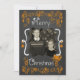 Um quadro de discussão tem um plano de fundo com lindos pergaminhos e estrelas de texto cor de laranja e branco que diz "Feliz Natal" na frente e "Que todos os seus dias sejam felizes e brilhantes" na parte de trás. Este belo Cartões de foto de Natal de feriado personalizado tem vários ornamentos de estrelas, e um pássaro em um design de ninho e áreas que você pode adicionar facilmente seus nomes, o ano atual e a foto!