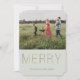 Ouro moderno e elegante "FELIZ", cartão com fotos de Férias. A placa apresenta uma foto na frente e atrás e várias linhas para sua mensagem, nomes e ano personalizados. A cor de fundo, mostrada como prata, pode ser personalizada.