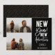 Novas Aventuras de Ano Novo, Cartão de Colagem de Fotos de Feriado 3 de Ano Novo. Apresenta uma tipografia branca-quic moderna a preto, com a coordenação do suporte geométrico dourado.