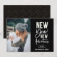 Novas Aventuras de Ano Novo, cartão com fotos de Férias. Apresenta uma tipografia branca-quic moderna a preto, com a coordenação de padrões geométricos a preto e dourado.