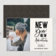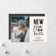 Novas Aventuras de Ano Novo, cartão com fotos de Férias. Apresenta a tipografia quic moderna em preto em cinzas congeladas com a coordenação de padrões geométricos em preto e ouro.