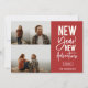Novas Aventuras de Ano Novo, Cartão de Colagem de Fotos de Feriado 3 de Ano Novo. Apresenta uma tipografia branca-quic moderna em vermelho-rustico com a coordenação de padrões geométricos de vermelho e ouro.