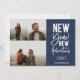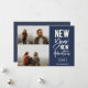 Novas Aventuras de Ano Novo, Cartão de Colagem de Fotos de Feriado 3 de Ano Novo. Apresenta a tipografia branca-quic moderna em azul-marinho com a coordenação do suporte geométrico dourado.
